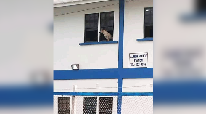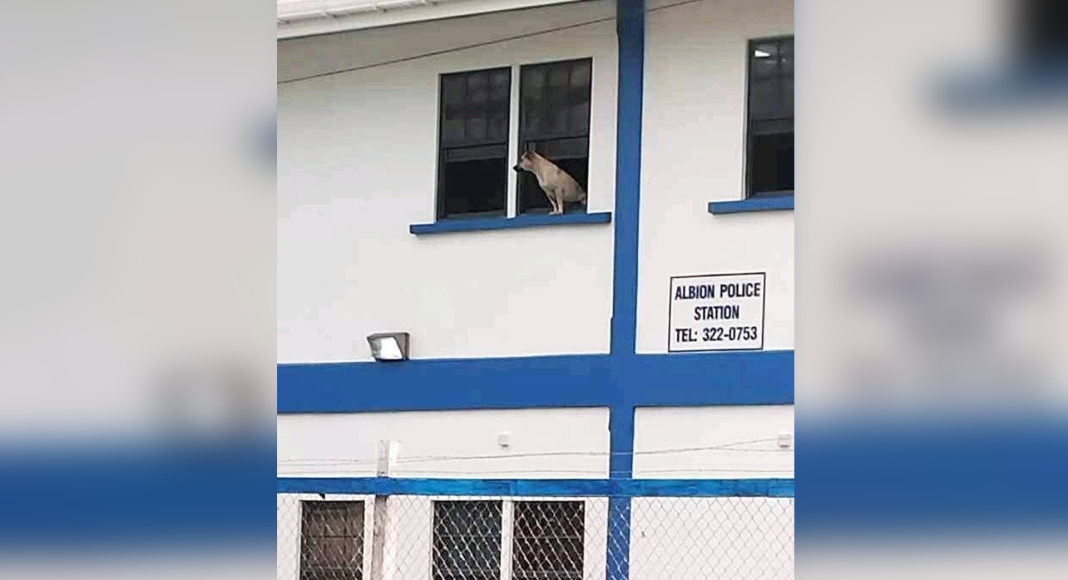 C’est une photo qui fait le tour des réseaux sociaux depuis plusieurs semaines. On y aperçoit un chien regardant calmement par la fenêtre du premier étage d’un bâtiment officiel sur lequel est inscrit « Albion Police Station ». De quoi faire sourire… mais surtout semer la confusion.